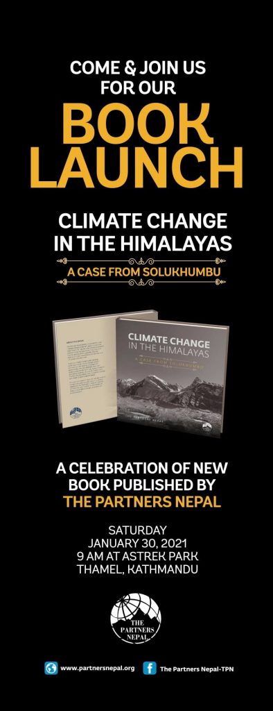 The Partners Nepal much appreciate all our friends and supporters who accepted our short notice invitation to attend our book launching of our much-anticipated work CLIMATE CHANGE IN THE HIMALAYAS – A Case from Solukhumbu by our chairman, Mr. Ang Rita Sherpa, at Astrek Park on 30th Jan 2021. Your presence was very important; we (The Partners Nepal) were overwhelmed with your participation and love for our projects, from reforestation “One Day One Tree” to the book launch by purchasing the books. The book’s proceeds will go to our newly launched ONE DAY ONE TREE in Langtang Valley 2021. The Partners Nepal was also equally grateful to Mr. Per Temba Sherpa and Mrs. Ang Maya Sherpa, who had accepted our request to release our books and made a significant remark from Mr. Per Temba Sherpa. The Partners Nepal looks forward to receiving more moral support from each of you who attended our program this morning. Thank you so much!